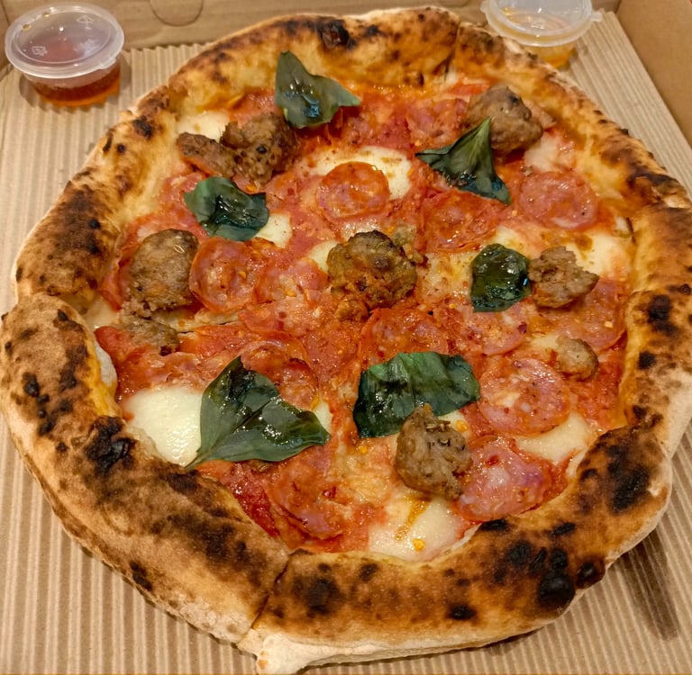 A Mano’s Diavola is best suited for diners who genuinely enjoy spicy, meat-forward pizzas and don’t mind paying a bit more for quality ingredients and solid execution. The crispy, well-charred crust and generous toppings make it satisfying, while the additional honey adds flexibility.