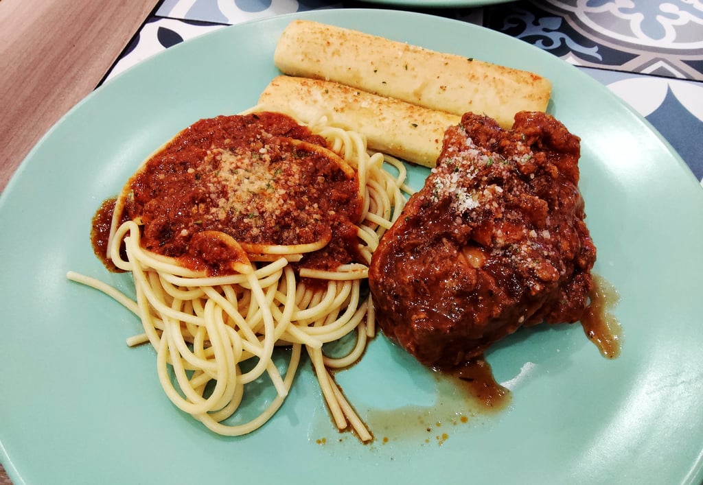 The pasta is smooth and slightly soft, falling short of the firm al dente texture expected from traditional Italian cooking. However, it remains easy to chew and still pairs well with the sauce. The meat sauce is thick and clings to the noodles, creating a cohesive bite.