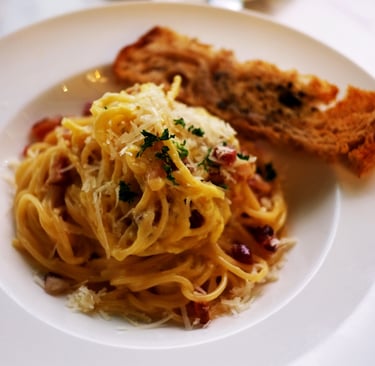 The texture holds it back slightly, but the flavor profile is on point. It is a warm, balanced Carbonara that still delivers a satisfying experience. The flavors work together nicely and make the dish enjoyable.