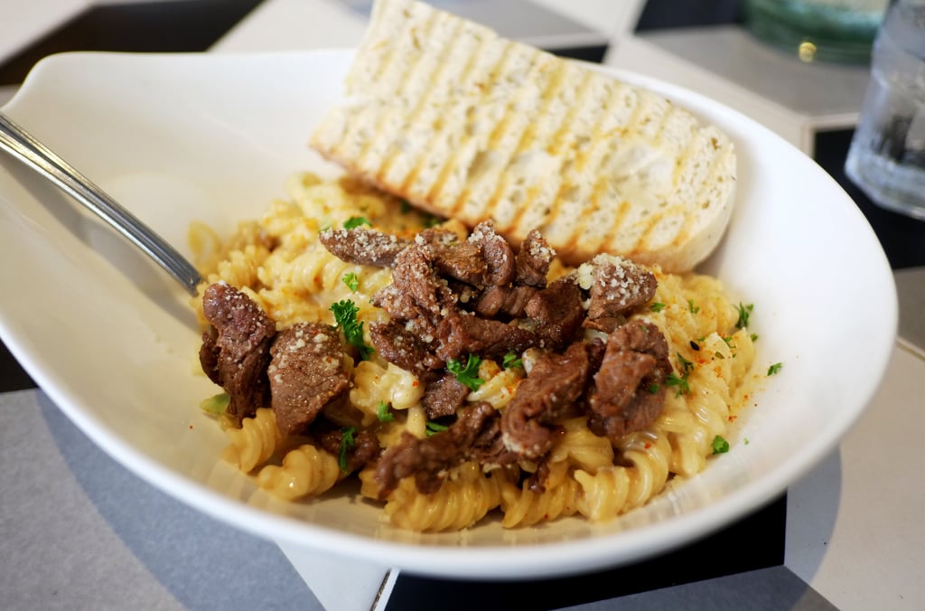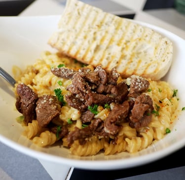 A flavorful and creamy pasta that leans toward a strong stroganoff profile. It is great for diners who enjoy rich, saucy dishes.