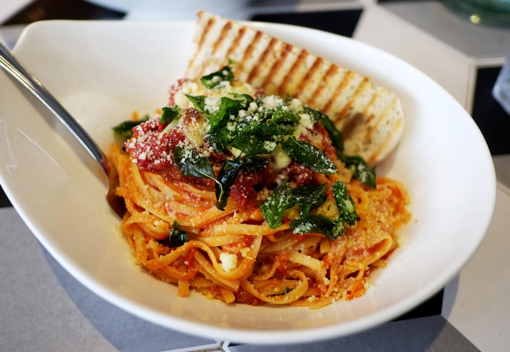 The sauce has a good, sweet tomato blend. The chicken is cooked well and has a pleasant saltiness that pairs nicely with the pomodoro. Everything comes together in a balanced way.