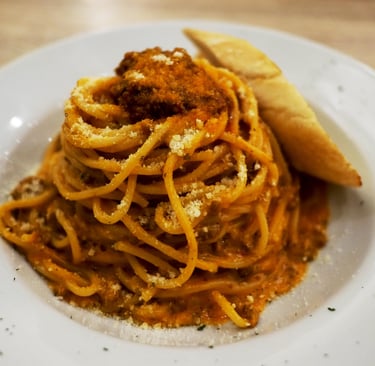 A comforting and well assembled Bolognese. It looks good, smells inviting and offers a sweeter, creamier twist on the classic. Easy to enjoy and satisfying to finish.