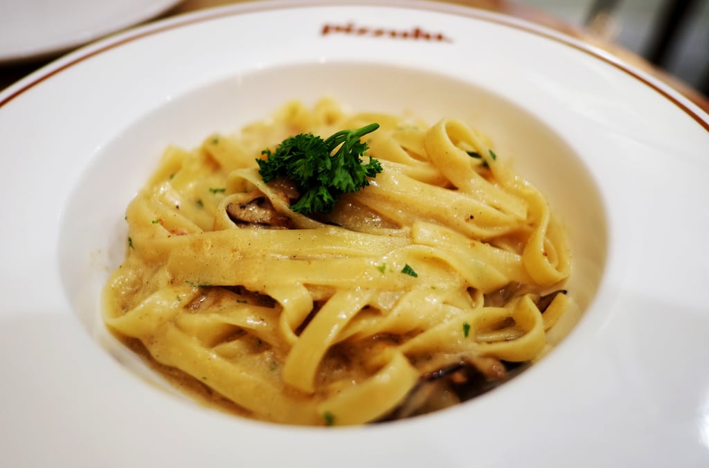 The fettuccine has a steady firmness that holds sauce well. The creamy base wraps around the noodles smoothly. The shiitake mushrooms provide a nice contrast with their soft chewiness, adding a different bite that shifts the texture from purely creamy to slightly earthy.